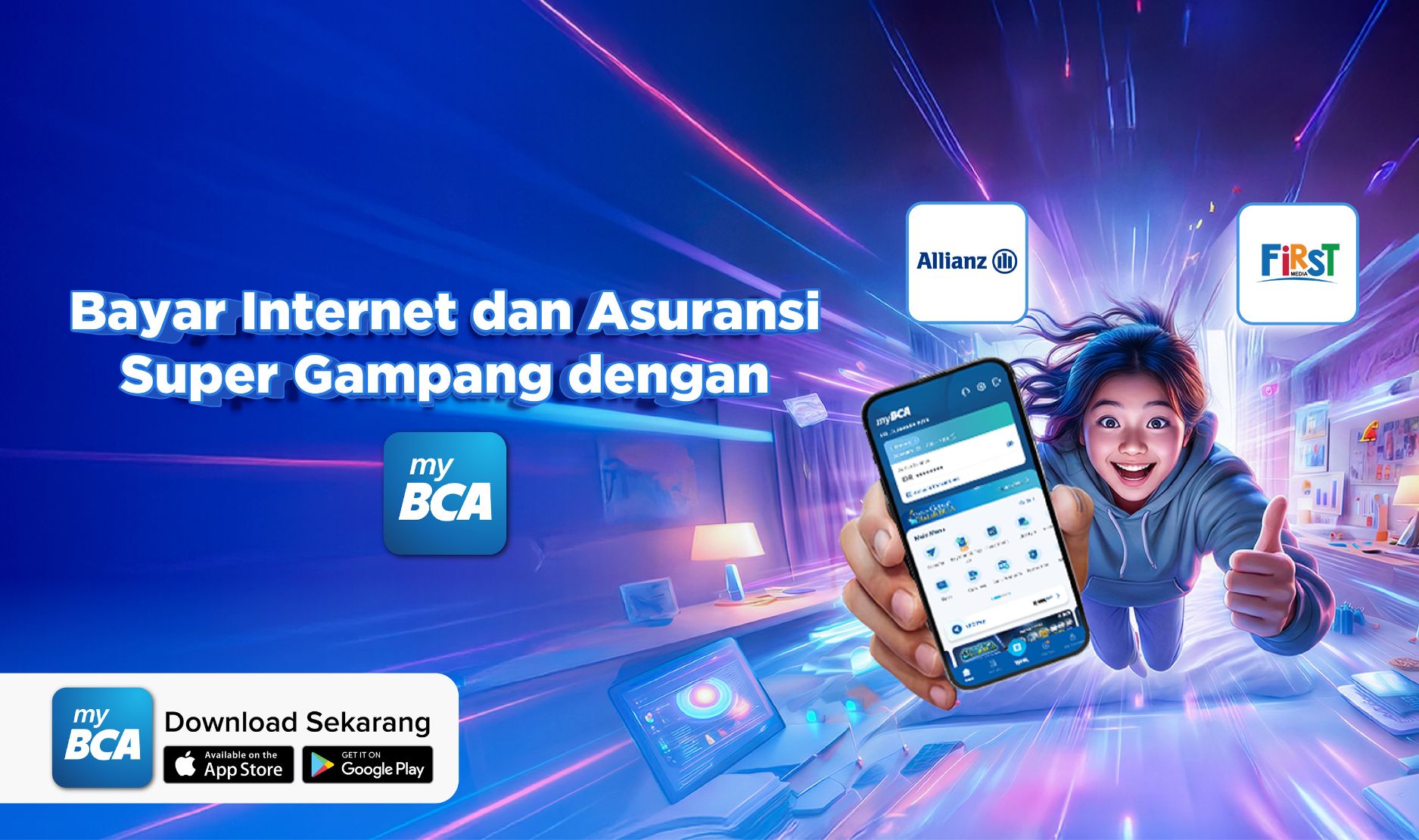 Kawan PRIMA, dengan MyBCA, bayar internet First Media dan asuransi Allianz kini tidak lagi merepotkan. Satu aplikasi, banyak kemudahan, dan transaksi yang aman berkat dukungan Jaringan PRIMA. Saatnya beralih ke cara bayar yang lebih praktis dan efisien bersama MyBCA.