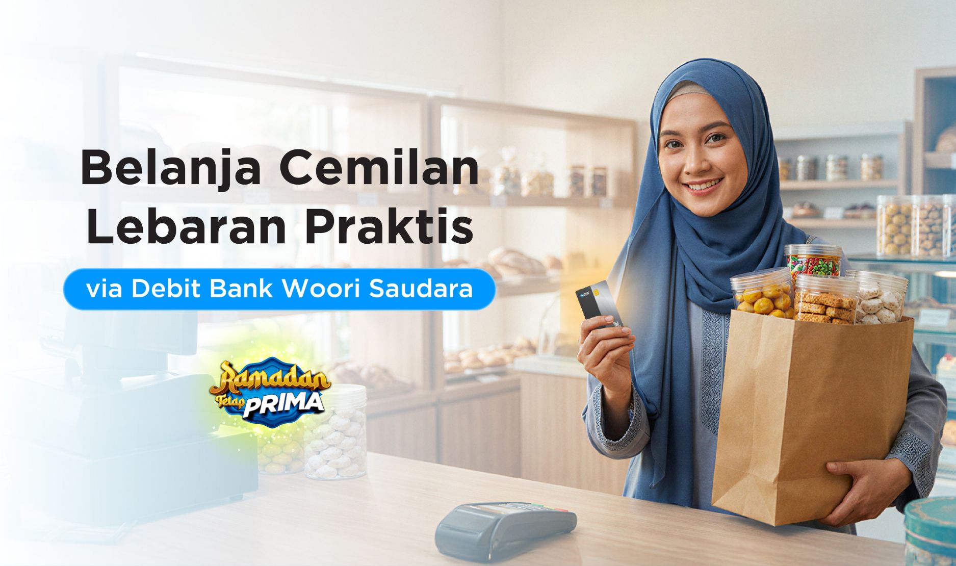 Kawan PRIMA, suasana Lebaran memang identik dengan kebersamaan dan hidangan lezat di meja tamu. Mulai dari nastar, kastengel, putri salju, hingga keripik dan aneka kue kering lainnya, semua jadi sajian wajib untuk menyambut keluarga dan sahabat. Nah, agar momen belanja cemilan Lebaran makin praktis dan nyaman, Kawan PRIMA bisa mengandalkan kartu Debit Bank Woori Saudara (BWS) sebagai solusi pembayaran yang simpel dan aman.
