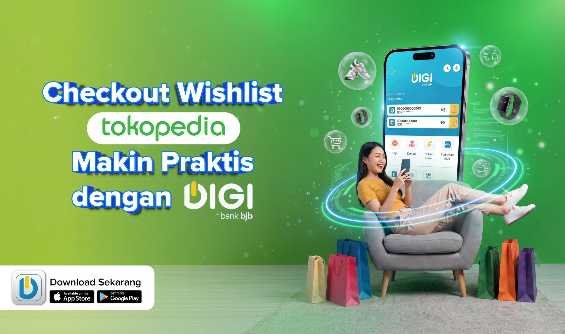 Mulai dari kebutuhan sehari-hari hingga barang impian, semuanya bisa kamu dapatkan tanpa ribet. Jadi, yuk segera checkout wishlist Tokopedia kamu dan rasakan pengalaman belanja yang lebih nyaman bersama DIGI by bank bjb dan dukungan Jaringan PRIMA!