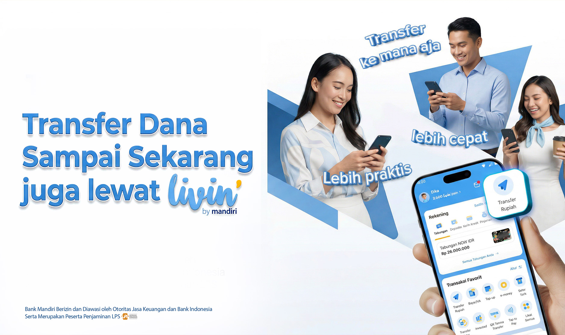 Yuk, rasakan kemudahan transfer dana kapan saja lewat Livin’ by Mandiri, dan nikmati pengalaman transaksi yang lebih praktis, cepat, dan tetap PRIMA setiap hari!